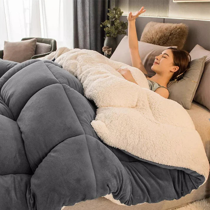 The Sherpa Doona features a plush fleece underside that wraps you in cloud-like warmth. Perfect for cold nights, it offers that snug, cocooned feeling without the need for extra blankets.