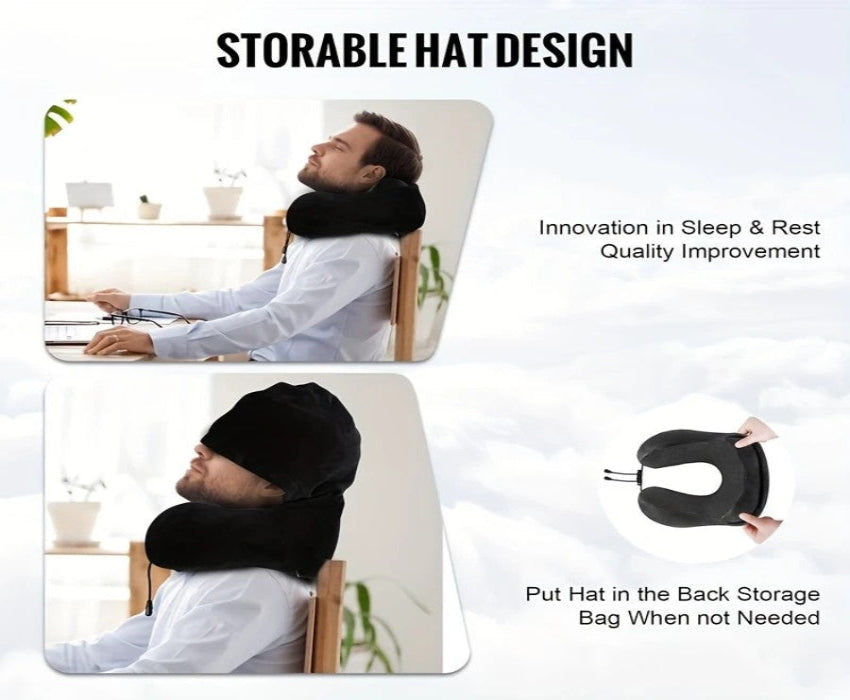 This travel neck pillow with an attached hood is designed to help you rest more comfortably while on the move. Its memory foam core supports your neck, while the soft hood provides a sense of privacy and light coverage—ideal for flights, road trips, or quick naps between destinations.